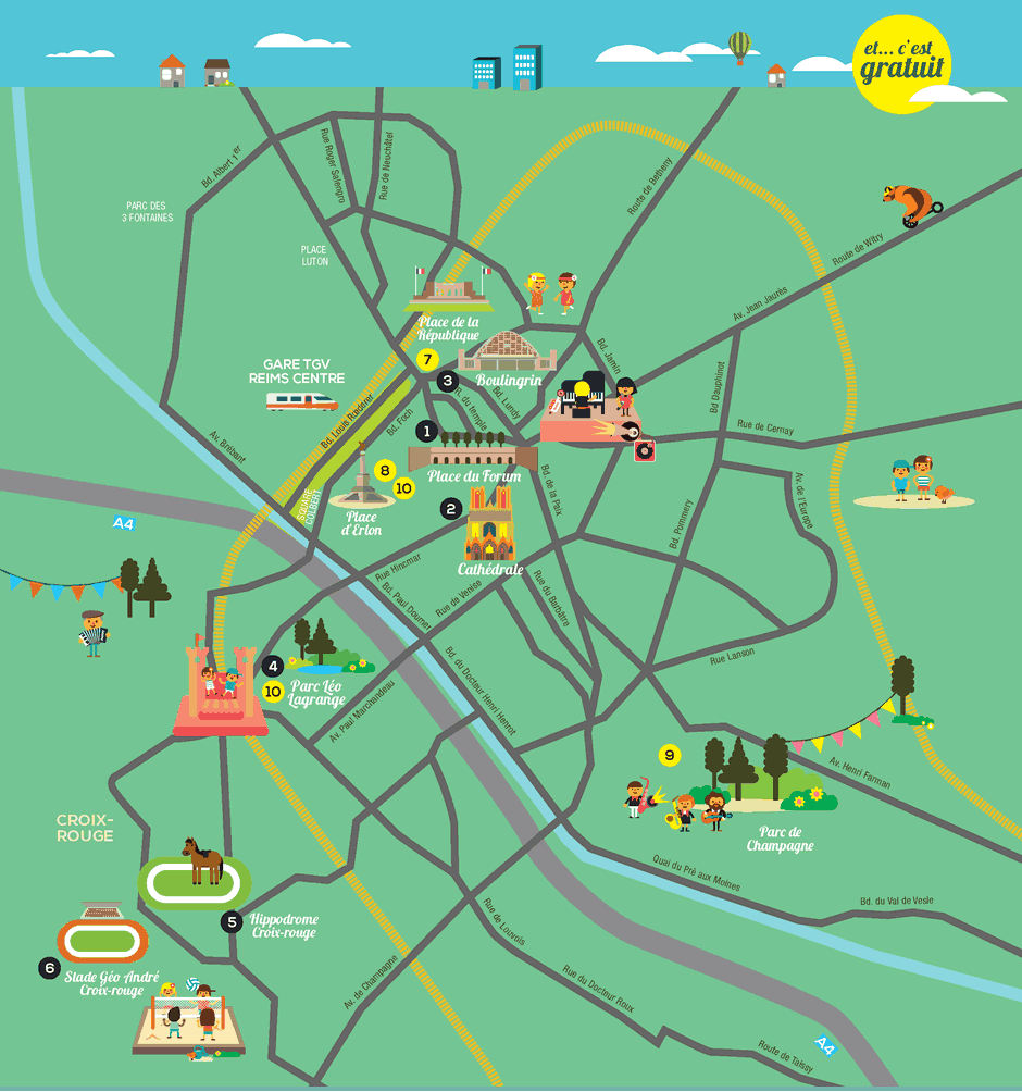 « Place aux jeux », du 17 juillet au 2 août, de 10h à 19h, au parc Léo Lagrange. Entrée libre. Petite restauration sur place. Un Eté à Reims se poursuit jusqu’au 30 août avec notamment « Place aux spectacles » au Cryptoportique, « Soirées Jazzy » au pied des Halles du Boulingrin et « Place au ciné » dans divers quartiers. Plus d’infos sur www.reims.fr